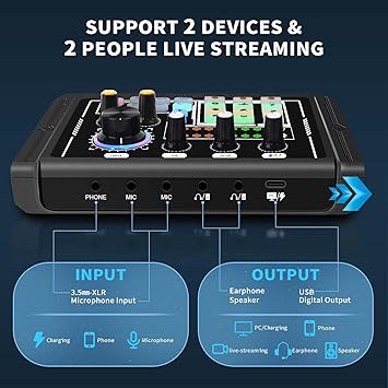 【Yeni başlayanlar için tasarlanmıştır】 Bu ses kartı öncelikle canlı yayına yeni başlayanlar için tasarlanmıştır. Canlı yayın endüstrisinde yeniyseniz, bu giriş seviyesi paket seti sizin için mükemmel olacaktır. Podcasting cihazı, canlı akışı kolayca başlatmak için bir PC’ye veya akıllı telefona takılabilen bir ses konsolu, mikrofon ve konsol mikrofon kiti içerir. Kullanımı çok kolay.