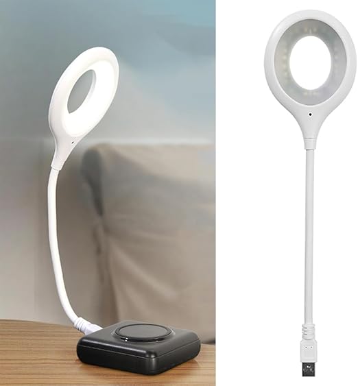 20 LED BONCUK: Ses kontrollü okuma lambası, eşit ve yumuşak aydınlatma için eşit olarak dağıtılmış 24 yerleşik LED boncuk ile dairesel bir ışık yayan yüzeye sahiptir.