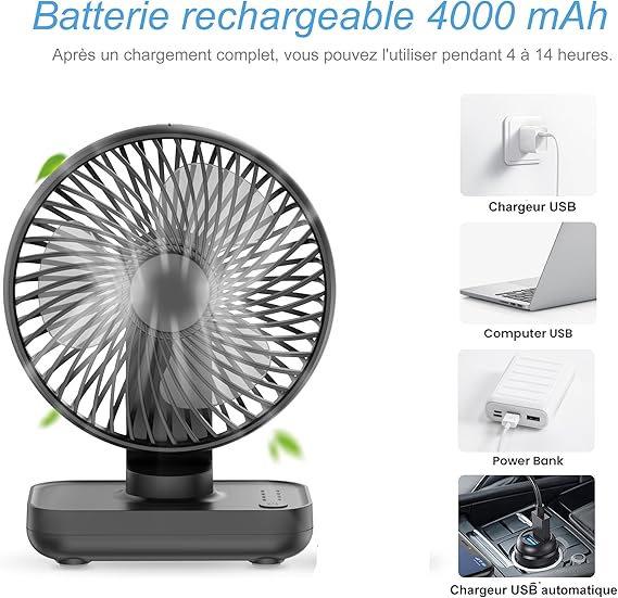 Sessiz masa vantilatörü, küçük, USB mini 4000 mAh pilli vantilatör, çalışma masası, ev, piknik ve ofis için çok sessiz vantilatör – taşınabilir fan