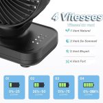 【Pille çalışan vantilatörler için uzun çalışma süresi】Bu masa vantilatörü dahili 4000 mAh şarj edilebilir pil ile donatılmıştır. 4 – 14 saate kadar çalışır (hızına bağlı olarak). USB-C kablosu ile teslim edilir, USB vantilatörü USB bağlantısı olan her cihazla (dizüstü bilgisayar, masaüstü bilgisayar, powerbank, priz, elektrik fişi) ile uyumludur.