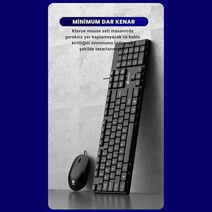 Sessiz Yumuşak Tuşlu Ofis Bilgisayar Laptop Kablolu Klavye Ve Mouse Seti 104 Tuşlu Q Klavye