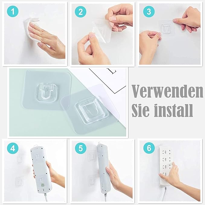 4. Kolay kurulum: Duvar yüzeyini temizleyin ve kurutun, kancanın çıkartma kapağını çekin ve ardından duvara bastırın. Çift taraflı kendinden yapışkanlı duvar kancası yüzeye zarar vermeden kolay temizlenir ve yeniden konumlandırılır. Bir fön makinesi ile ısıtıldığında her zaman tekrar kullanılabilir – vantuzlu kancalardan çok daha iyi