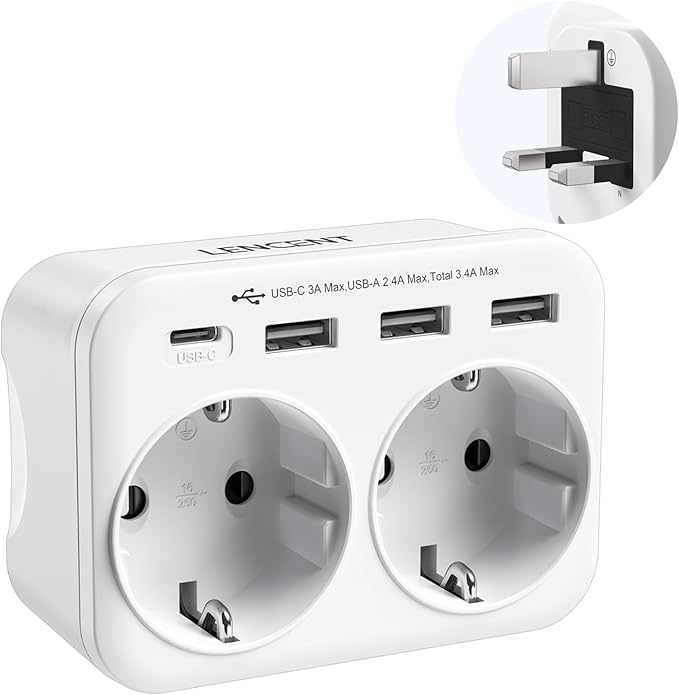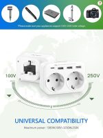 【 6’sı 1 arada seyahat adaptörü】 2 AC Schuko priz + 1 Tip C bağlantı noktası + 3 USB bağlantı noktası, 6 cihaza kadar yüksek hızda aynı anda şarj edebilirsiniz. 5 V 2,4 A USB dizüstü bilgisayarlarla uyumludur, 5 V 3,0 A Tip C Macbook, bilgisayar ve diğer cihazlar ile uyumludur. Nominal güç 110 V ~ 250 V-3250 W.