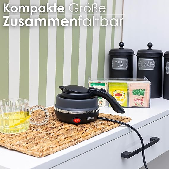 ✔️ 5. Kullanıcı dostu ve şık tasarım Modern, ergonomik tasarım, işlevsellik ve stili birleştirir. Isıya dayanıklı silikon yüzey yüksek sıcaklıklarda bile serin kalır ve bu da ek güvenlik sağlar. Katlama mekanizması, kolay saklama için su ısıtıcısının boyutunu azaltır.