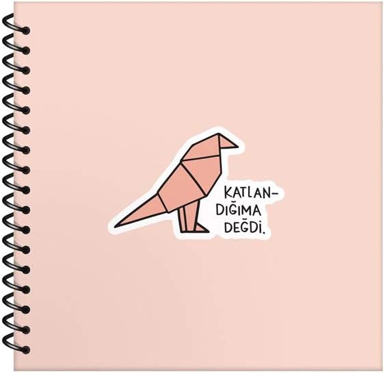 Şeyler 50 Yaprak Çizgili Sert Kapak Stickerli Defter, Katlandığıma Değdi, 16x15cm