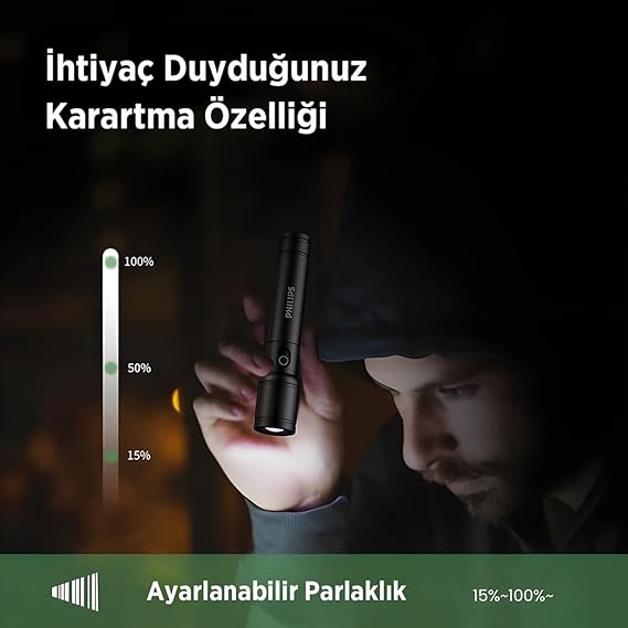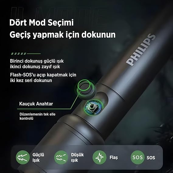 Aydınlatma Modları: Güçlü ışık, yumuşak ışık, yanıp sönme/SOS