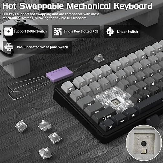【Çalışırken değiştirilebilir Öze】 Anahtarlar ve %100 Gölgelenme Önleme] Çalışırken değiştirilebilir PCB, çeşitli 3 pinli mekanik anahtarları barındırır, kendi %75 oyun klavyenizi özelleştirmenizi kolaylaştırır, alışkanlıklarınıza uyum sağlayan ve keyfini çıkaran benzersiz bir klavye oluşturur. oyunlarda farklı anahtarların dokunma hissi. Klavye, hızlı ve gecikmesiz tetikleme için %100 gölgelenme önleme özelliğini destekler.