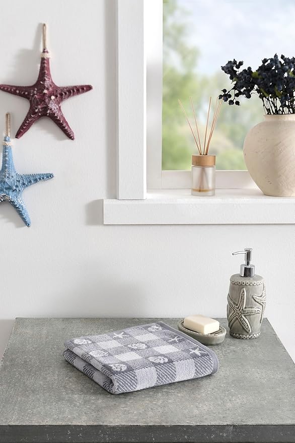 Shell Plaid Kadife El ve Yüz Havlusu 50×90 cm (Gri)