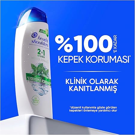 Mentol Ferahlığı kepek önleyici 2’si 1 arada şampuan ve saç kremi nemlendiren formülüyle günlük kullanım içindir