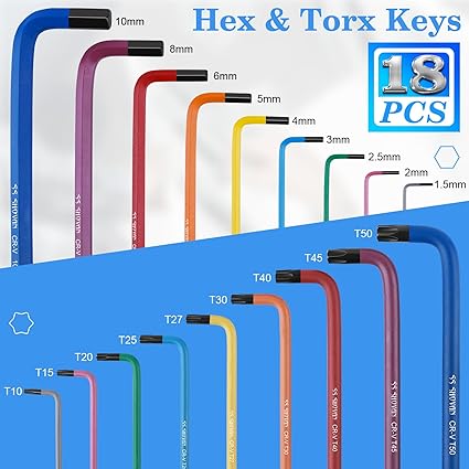 ✅ [18 ADET Allen Anahtar Seti Aracı] – 9 Parça Top uçlu altıgen anahtar seti: 1,5 mm, 2 mm, 2,5 mm, 3 mm, 4 mm, 5 mm, 6 mm, 8 mm, 10 mm, 9 ADET Torx-Star anahtar seti: T10, T15, T20, T25, T27, T30, T40, T45, T50.