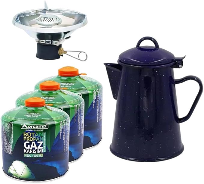 Orcamp Siboplu Kartuş Ocak K-193+3 Adet Tüp KTS-450+Retro Demlik ORC-021-B3