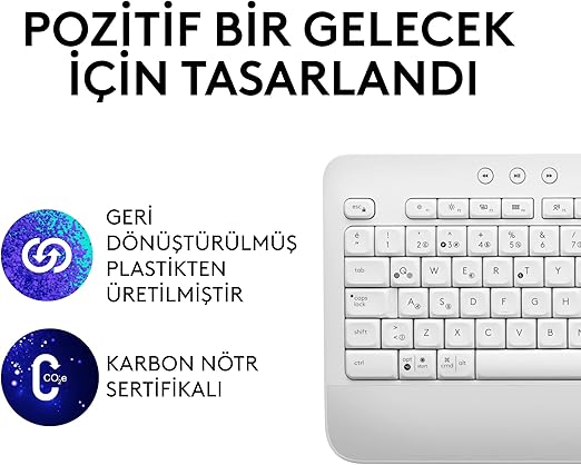 Signature K650 Tam Boyutlu Kablosuz Klananye, Bilek Desteği, BLE Bluetooth naneya Logi Bolt USB, Derin Yastıklı Tuşlar, Tuş takımı, PC/Windows/Mac ile Uyumlu, Beyaz