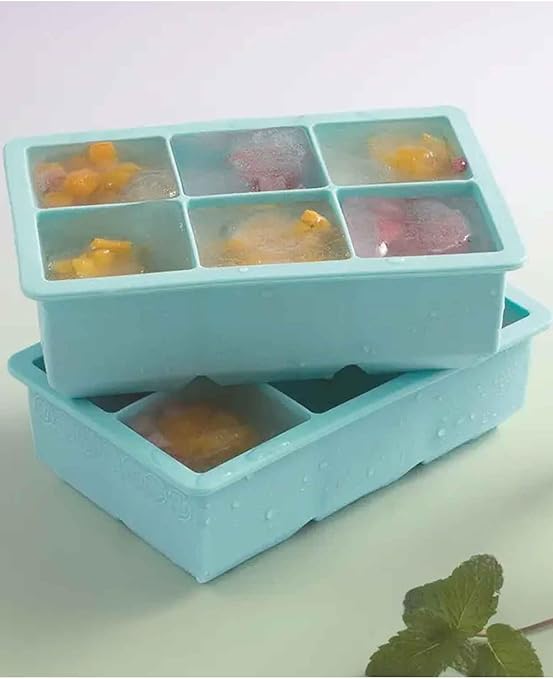 Silikon Büyük Boy Xxl 6’lı Küp Buz Kalıbı, Kapaklı, Yeşil 2 Adet