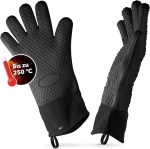 Silikon fırın eldiveni, ısıya dayanıklı ızgara eldiveni, kaymaz pişirme eldiveni, yumuşak pamuk iç astarlı, 250°C’ye kadar eldiven – siyah