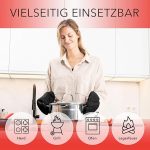 Kaymaz ve güvenli – Yapılandırılmış yüzey sayesinde iyi kavranan bir yüzey oluşur. Özellikle sıcak ve yağlı tencere veya fırın tepsileri taşırken güvenlidir.