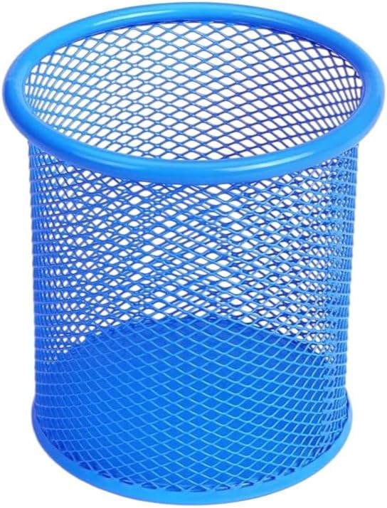 Silindir Masa Üstü Kalemlik 1 Adet Metal Fileli Renkli Perforeli Yuvarlak Kalemlik Ofis Büro Okul Mavi