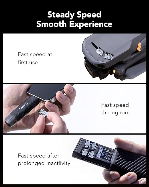 *UHS-I 104MB/s’den daha yüksek hızlar elde etmek için tescilli teknolojiyle tasarlanmış 205MB/s’ye kadar okuma hızı. Bu yüksek hıza ulaşabilen uyumlu bir cihaz gerektirir. Lexar RW310X kart okuyucu ile bu yüksek hıza ulaşın (çok yakında). 100 MB/sn’ye (64 GB) kadar yazma hızı 150MB/s’ye (128 GB-1 TB) kadar yazma hızı 1MB = 1000.000 bayt.