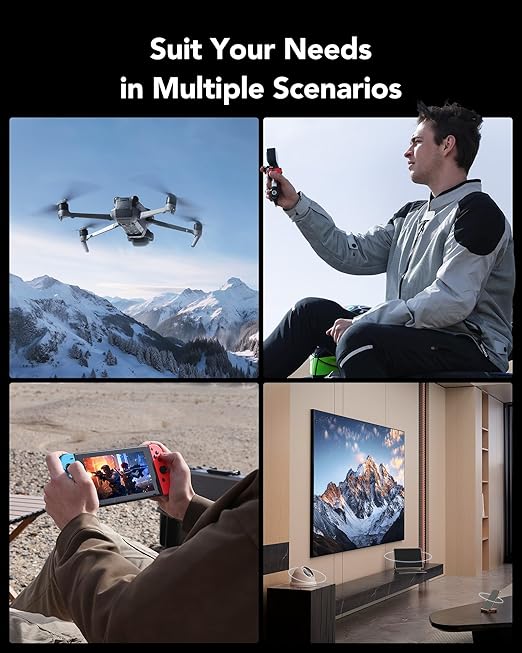 Kapsamlı uyumluluk. DJI, GoPro, Switch, SteamDeck ve daha pek çok cihaz gibi çoğu akıllı telefon ve tablet, dron ve aksiyon kamerasıyla uyumluluk sağlamak için test edilmiştir.