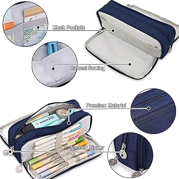 ÇİFT AÇIK TASARIM: Kalem çantası çift açıklık serisi, 3 fermuar, büyük kapasiteli çok fonksiyonlu saklama kutusu. Kurulabilir ve kolayca bulunabilir, kategorilere göre sıralanmıştır.