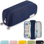 Pratik tasarım: Bu kalem çantası için üç bölmeli pratik tasarım, çeşitli eşyalarınızı ayırmak ve düzenlemek için. Ana bölme yeterli alan sunar ve diğer iki bölme kalem halkaları, elastik file cepler ve silgi, ataş, makas vb. gibi küçük eşyalar için iç ceplere sahiptir.