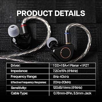 【 】SuperMix 4, dört sürücü tipinden oluşan lüks bir konfigürasyona sahiptir: 1DD+1BA+1 Düzlemsel +1 PZT. Bu özenle oluşturulmuş dördü bir arada matris akustik mimarisi, hassas frekans tepkisi ayarı ve genel denge sağlar. Dinamik sürücü, güçlü, ayrıntılı düşükler sunmak için 10 mm yüksek polimer diyafram kullanırken, BA, düzlemsel ve PZT sürücülerinin her biri kesintisiz, birleşik bir ses imzasına katkıda bulunur ve büyüleyici bir işitsel deneyim sağlar