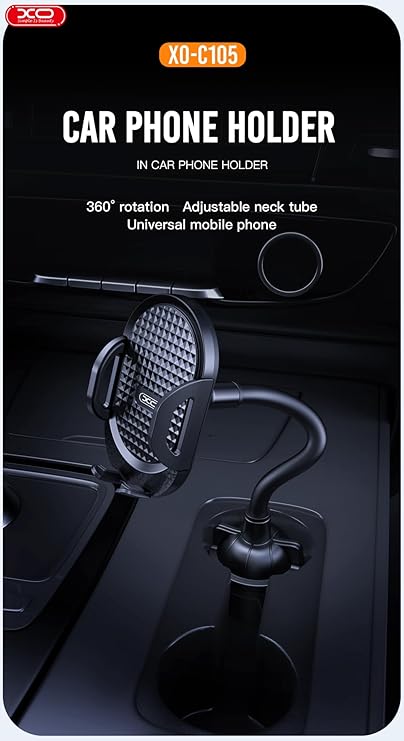 Simple is Beauty C105 Bardak Tutucuya Monte Araç İçi Telefon Tutucu, 360° Dönebilen, Otomatik Kilitli, Ayarlanabilir 3D Slikon Kablo, Kolay Kurulum, Siyah