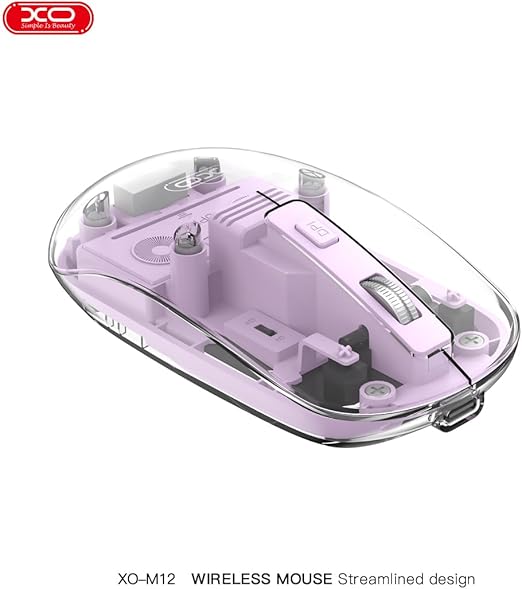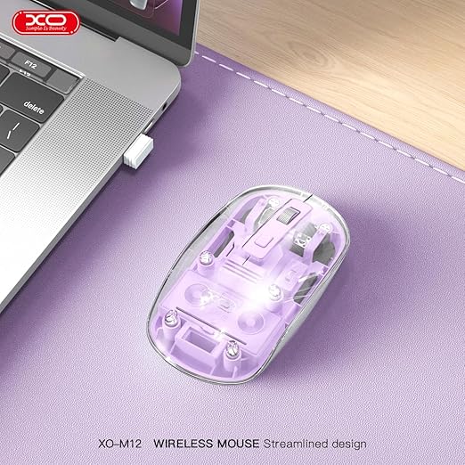 Simple is Beauty Çift Modlu Şeffaf Kablosuz Mouse M12 | Bluetooth 5.0 & 2.4 GHz USB Alıcı | 300 mAh Şarjlı Batarya | Sessiz Tıklama & Ergonomik Tasarım | 65 GR (Mor)
