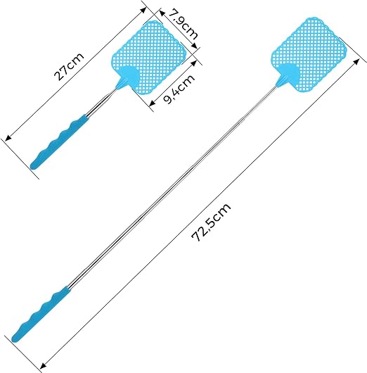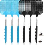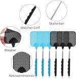 Sinek raketi, 6 adet, uzatılabilir, sinek raketi, sağlam, sinek, eşek arısı, sivrisinek ve diğer böcekleri uzaklaştırmak için kullanılır (siyah, mavi)