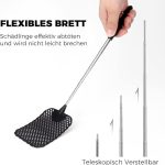 Kullanım ipuçları: Lütfen dikkat edin, sadece sineklere ateş eder, bu nedenle aşırı güç gerekmez. Kullanmadan önce yakl. Boru içindeki teleskopik parçanın her bir mafsalı için 1 cm. Böylece sonuna kadar esnetmek zorunda kalmazsınız, bu da sinek raketinin kullanım ömrünü uzatabilir.