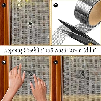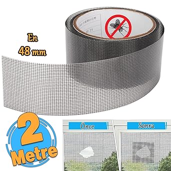 Sineklik Tülü Tamir Bandı Yırtık Kopmuş Delik Fiber Tül Yapıştırma Siyah 48 mm x 2 MetreUygunluk: 30 adet stokta