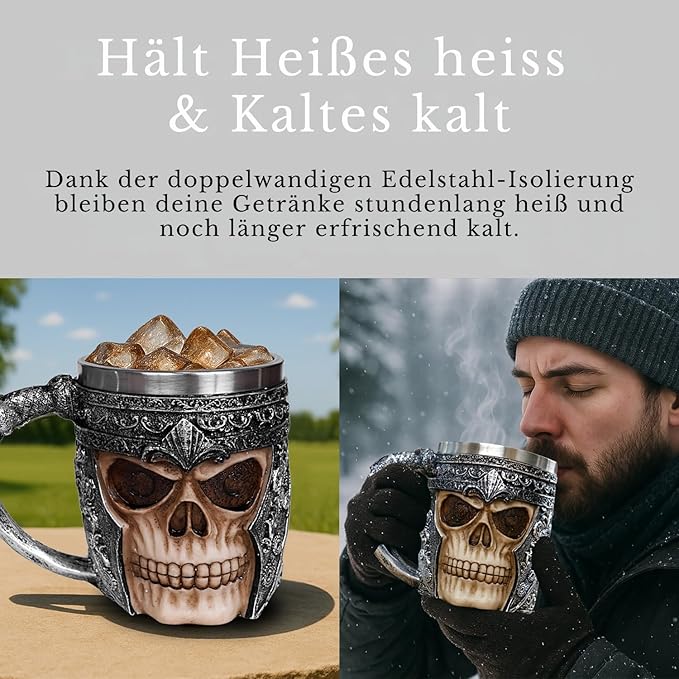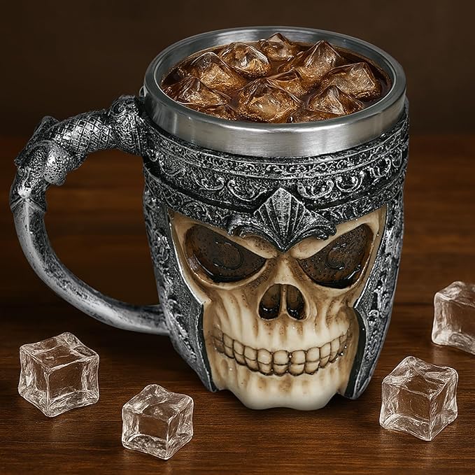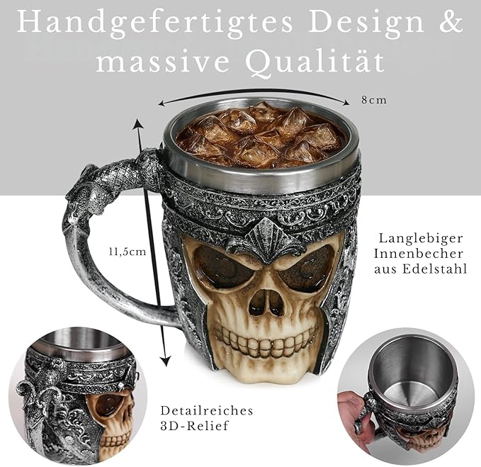 Yüksek kaliteli paslanmaz çelik kupa: Fırçalanmış kafatası kulplu kupa tek parçadır ve çizilmeye karşı dayanıklıdır. Bulaşık makinesinde yıkanmamasına rağmen, elde temizlenmesi çocuk oyuncağıdır ve bardağın uzun ömürlü olmasını sağlar