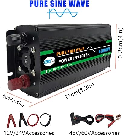 Saf Sinüs Dalgası DC12V/24V/48V/60V’yi, 1000W/1300W/1500W/2000W sürekli çıkışla (6000W 8000W 10000W 12000W dalgalanma özelliği), 1 AC prizi, bir LED voltaj ekranı, yüksek gerilim ile donatılmış AC 220V ev duvar gücüne dönüştürür. mevcut DC terminalleri ve iki LED çalışma lambası.