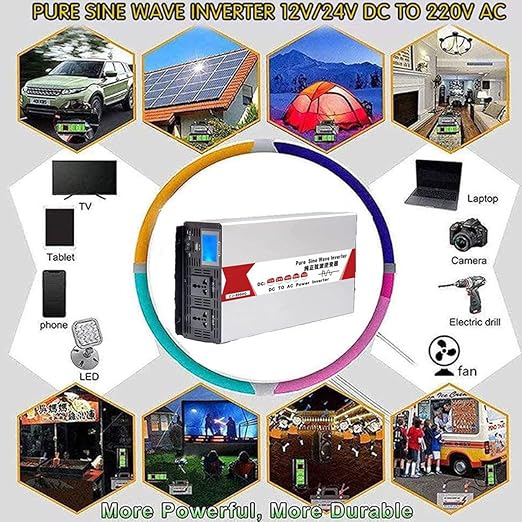【Saf Sinüs Dalgası İnvertörü】: Bu saf sinüs dalgası invertörü, 12V/24V/48V/60V DC’yi 220V AC’ye dönüştüren bir güç dönüştürücüsüdür. Seyahat, tatil veya uzun mesafeli araçlar için acil durum seyahat şarj cihazı yapın.