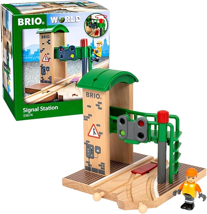 Üstteki düğmeyi çevirerek ışık rengini değiştir, BRIO Sinyal İstasyonu ile raylardaki akışı sen yönet