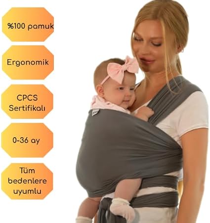 Sling Kanguru Esnek Wrap Sling Bebek Taşıma Şalı%100 Pamuk Sertifikalı Antrasit