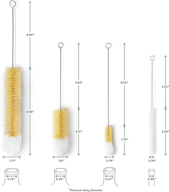 Çok işlevli: Bu fırçalar su şişesi temizleyici, biberon fırçası, nargile fırçası veya sürahi temizleyici olarak kullanılabilir, 3 farklı boyut tüm temizlik ihtiyaçlarını karşılar. Şişe temizleyicisinin içine iyi oturması için en küçük giriş çapını önceden belirlemek önemlidir.