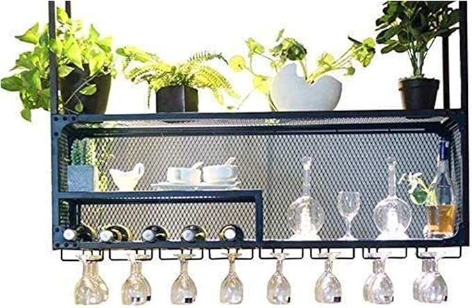 Şişe rafı Şarap Rafı Asılı Bardak Standı ve Raflı Bar Mobilyası, Şarap Severler ve Şarap Rafı Tavana Monte / Asma Şarap Camı Tutucu E