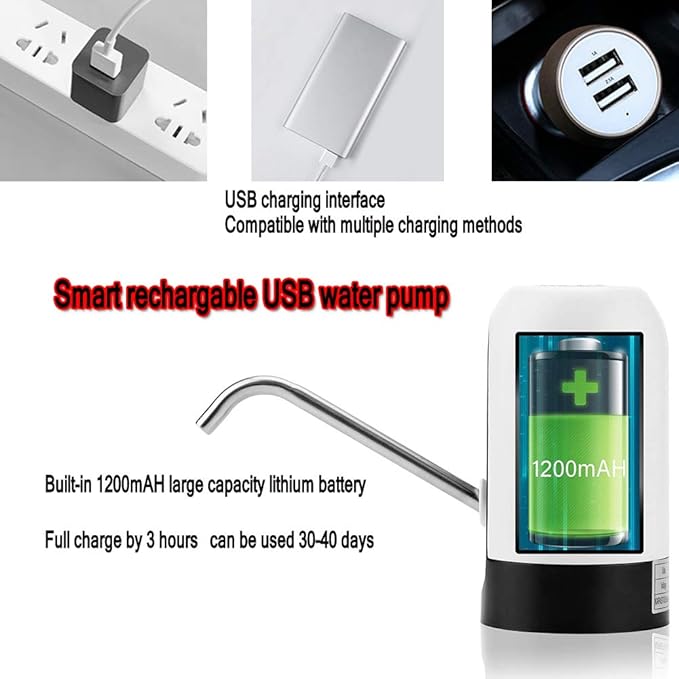şişesi pompası, 5 galon damacanaya uygun, USB şarjlı otomatik içme suyu pompası, 2-5 galon su şişelerine uygun, taşınabilir elektrikli su pompası, ev, mutfak, ofis, kamp için