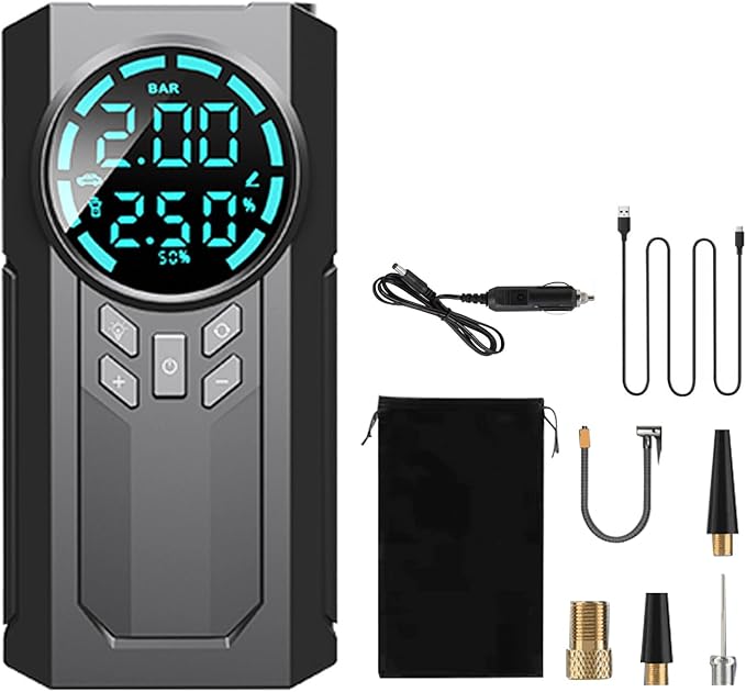 3’ü 1 arada Acil Durum Aracı: Bu araç hava pompası, araç lastiği şişirme aracı olarak hizmet vermesinin yanı sıra acil durum aracı olarak da kullanılabilir. Karanlıkta acil durumlarla başa çıkmak için ışıklarla birlikte ir. Ayrıca bir pe-C şarj portu ve bir USB çıkış portu içerir ve bu da onu fonlar, tabletler ve diğer cihazlar için uygun bir acil durum güç kaynağı yapar.