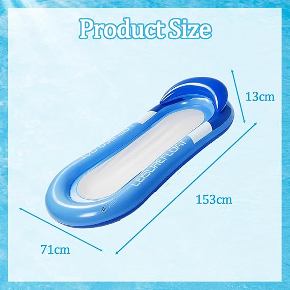 şişme su hamağı, baş destekli şişme havuz, şişme yüzme havuzu, havuz, lounge float, yaz havuzu, plaj, göl ve partiler için, 160 x 80 cm