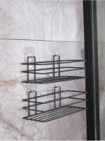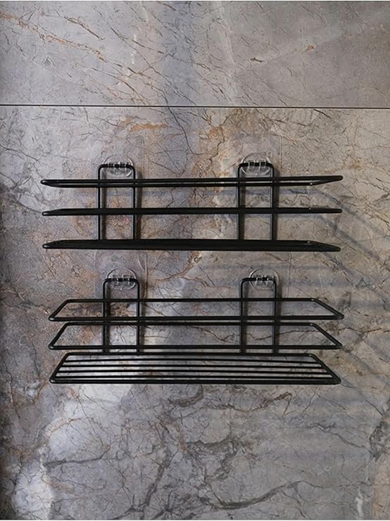 Siyah Banyo Duş Askısı ile 2 Adet Yapışkanlı Kancalı Banyo Rafı