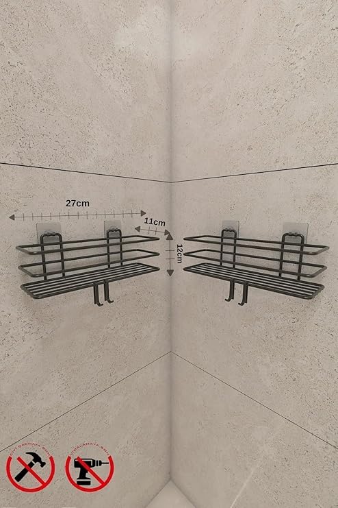 Pratik Tasarım: Duş rafları, sıvı sabunlar, şampuanlar ve diğer banyo aksesuarlarını organize etmek için mükemmel bir çözümdür.
