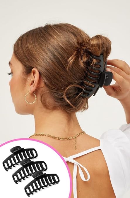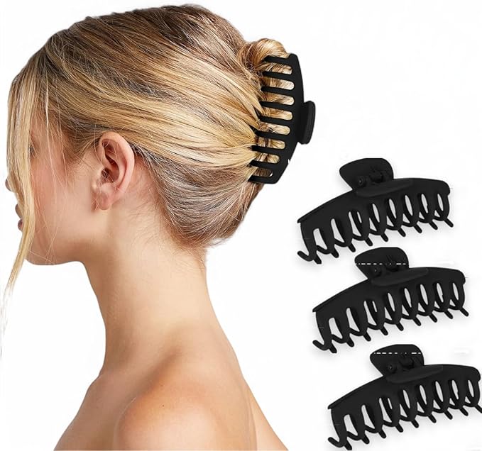 Siyah Büyük Boy Kaydırmaz Mandal Toka Seti, Kadın Çocuk Mandal Toka (11CM) 3’lü Set
