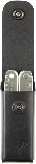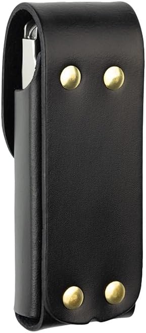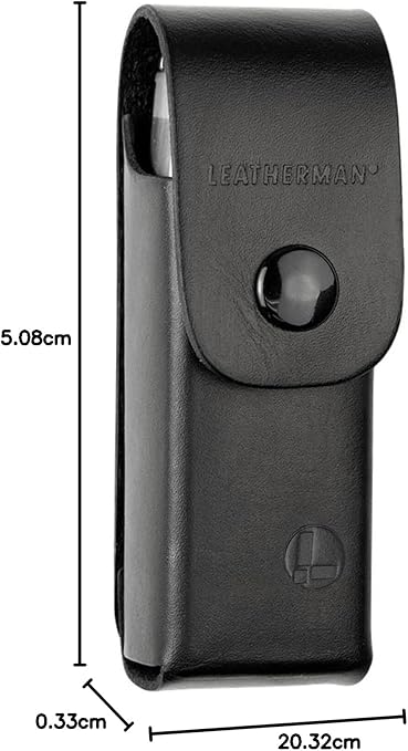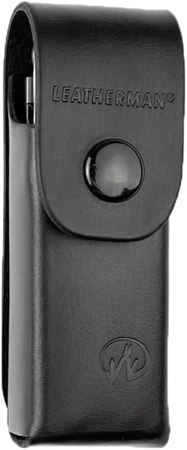 Leatherman ismi ve logosunu içeren siyah deri kılıf.