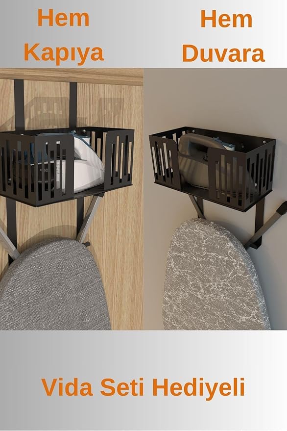 Yer Tasarrufu Sağlayan Tasarım: Kapı arkasına asılabilen pratik yapısıyla ütü ve ütü masanızı kolayca organize eder, evinizde fazladan yer açar.