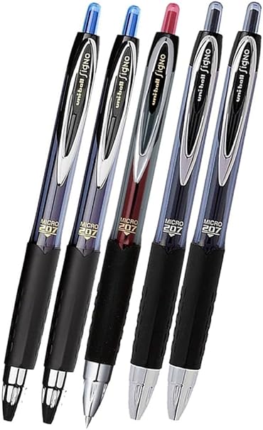 Siyah Kırmızı Pilot Kalem 5 Adet Uniball Signo Micro 207 0.5 mm Roller Uç Kalem Umn-207 İnci Uçlu Likit Mürekkepli