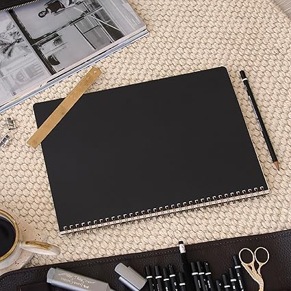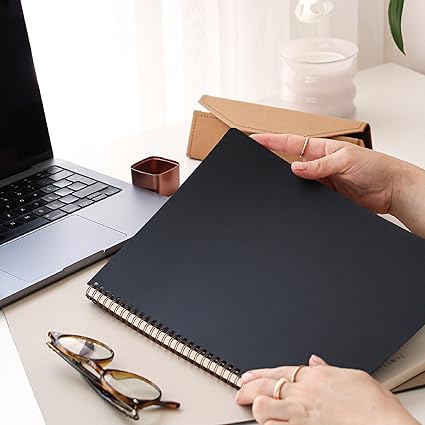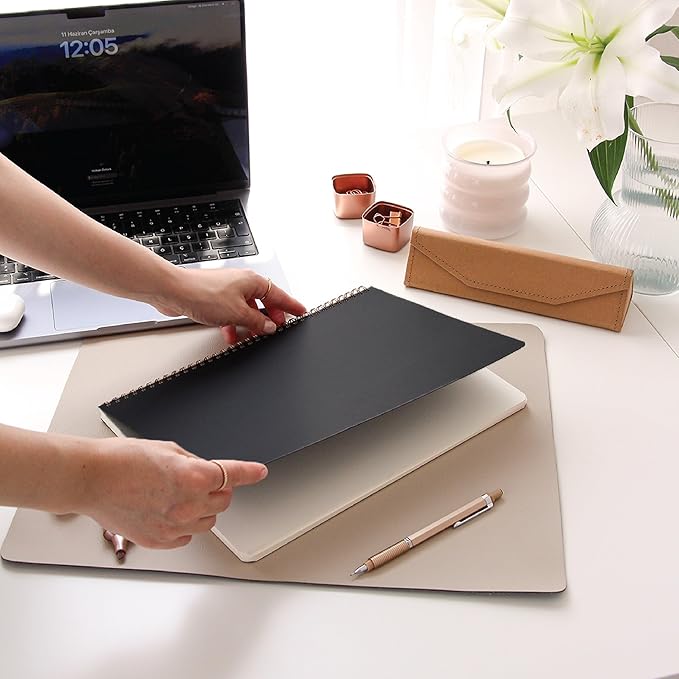 SİYAH KRAFT KAPAK & SPİRALLİ CİLT: Minimalist ve sade görünüm sunar. Spiral yapı defterin tamamen açılmasını sağlar, taşıması kolaydır.