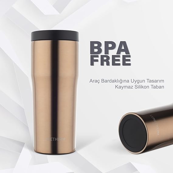 Sızdırmaz Vakumlu Çıft Katmanlı Çelik Bardak Termos 480 ml 6 saat sıcak / 12 saat soğuk – Bronz