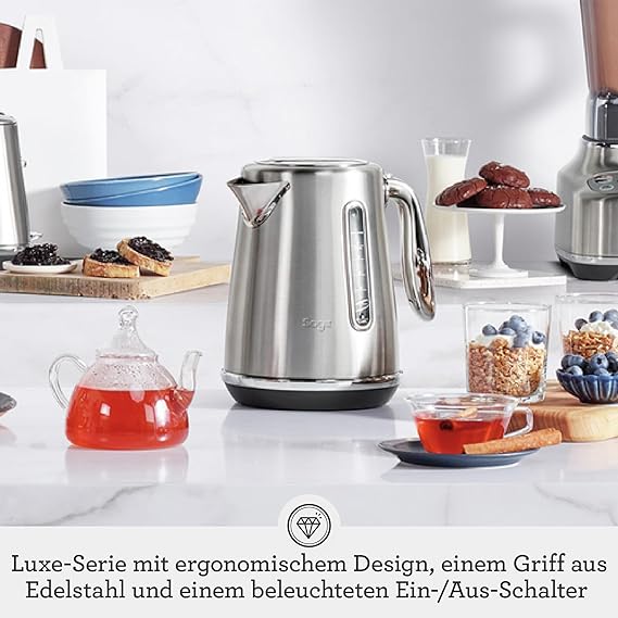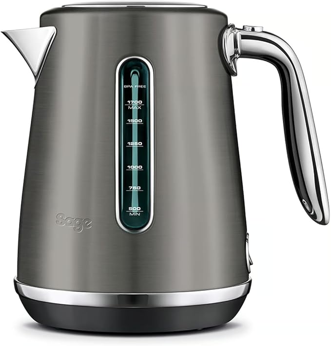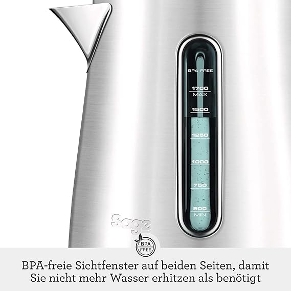 Yüksek kaliteli malzemeler: Su ısıtıcısının üretiminde, fırçalanmış paslanmaz çelik gibi birinci sınıf metalik boya ve krom vurgulu ve BPA içermeyen plastikler gibi yüksek kaliteli malzemeler kullanılmıştır