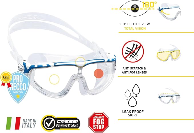 Kırılmaya ve çizilmeye karşı dayanıklı lens, UV ve ultra dayanıklı buğulanmaya karşı koruma, görüş alanı ve kolay ayarlanabilir tokalar.